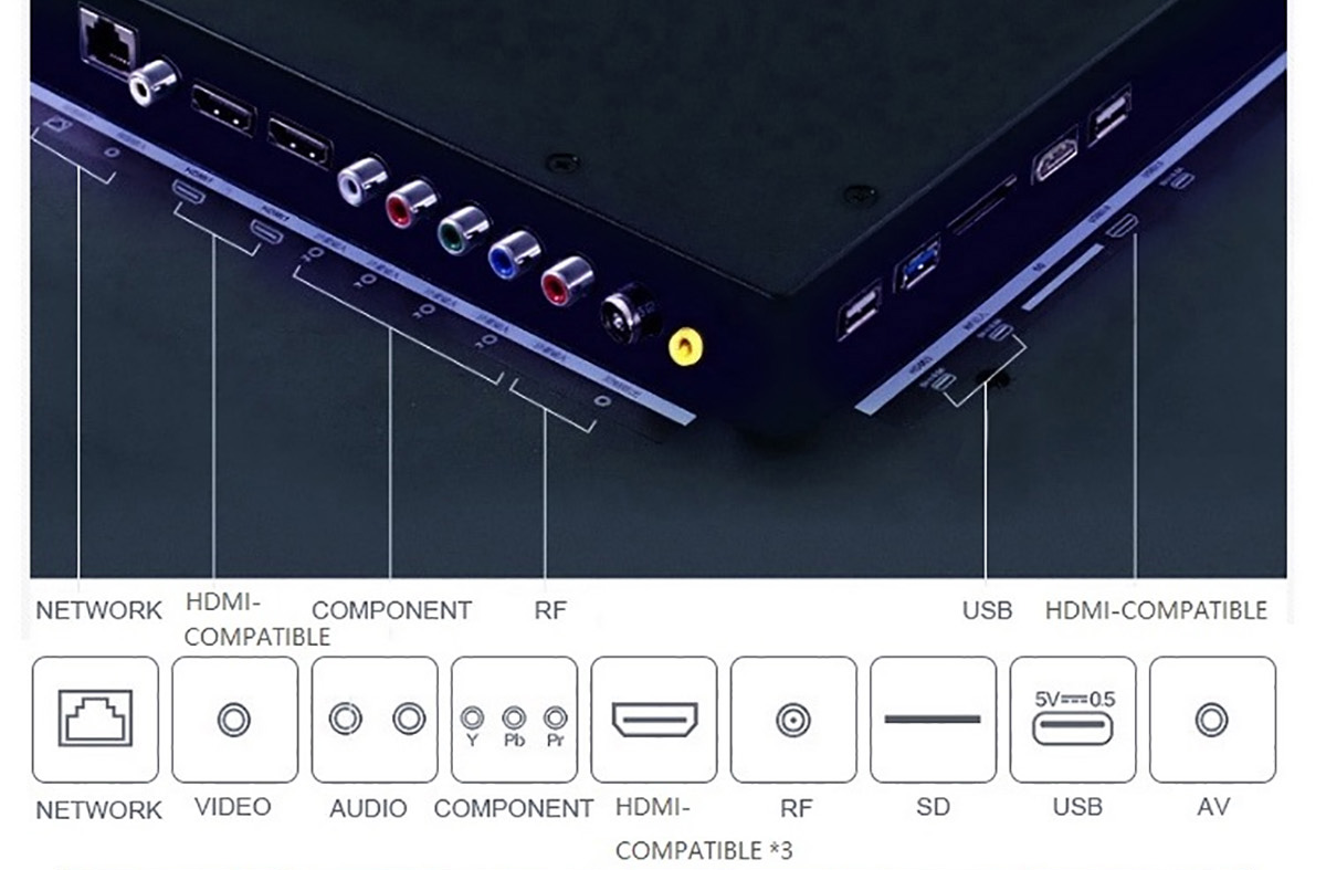 AV(CVBS+AUDIO) x2, HDMIx3, VGAx1, TVx1, USB2.0×2, USB3.0×1, WANx1, Coaxial x1